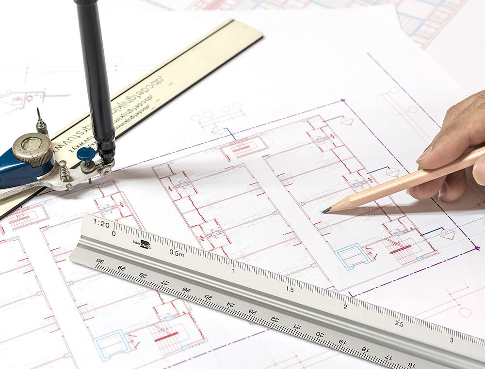 Escala liderpapel aluminio forma triangular con funda protectora longitud 30 cm 1:20 1:25/1:50/1:75/1:100/1:150