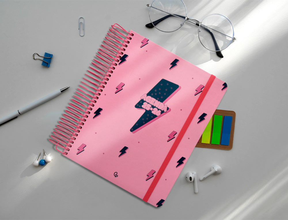 - Encuadernación: Espiral, lo que permite abrir completamente la agenda y escribir cómodamente.