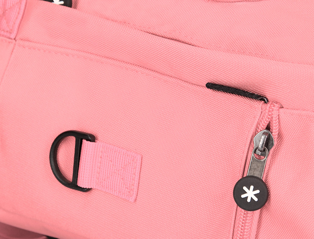 - Bolsillos Exteriores: Incluye un bolsillo frontal, un bolsillo trasero de seguridad y bolsillos laterales, uno con banda elástica, para acceso rápido a objetos pequeños.