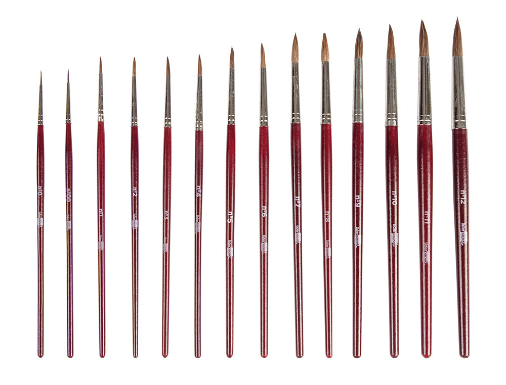 • Variedad de Formatos: Incluye 14 pinceles de diferentes tamaños (00-12), permitiendo abordar desde detalles intrincados hasta lavados amplios.