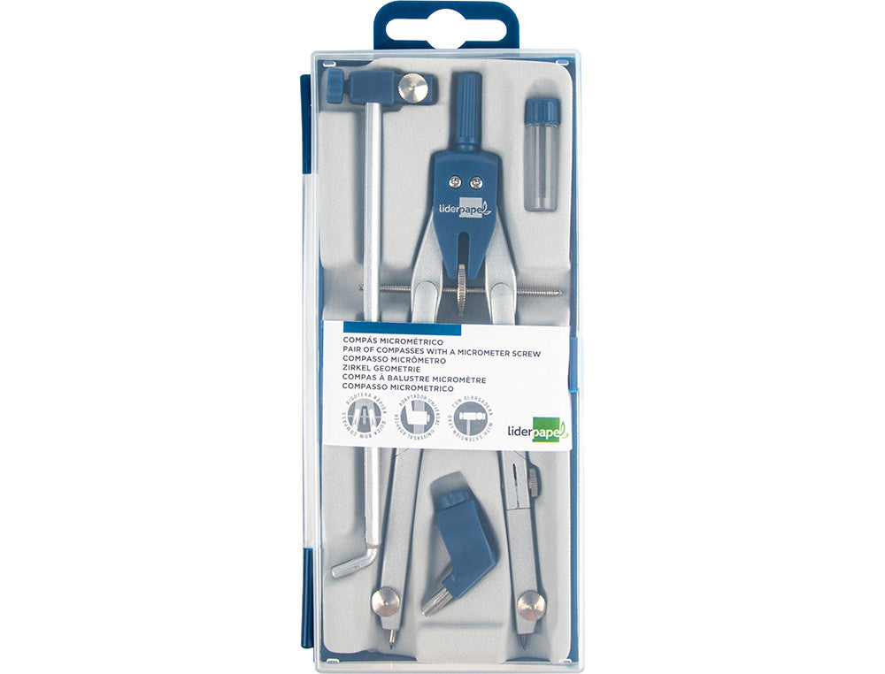 Compas liderpapel micrometrico con bigotera rapida adaptador y alargadera